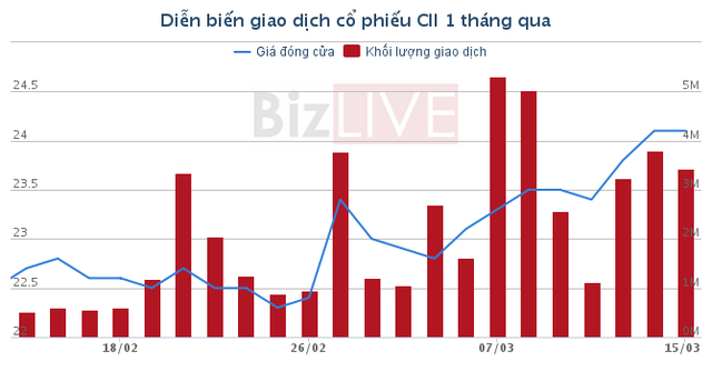 đây nhất, ngày 15/3, tổ chức này tiếp tục đăng ký mua thêm 1 triệu cổ phiếu CII